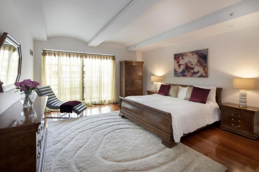 Entered directly from the elevator, the gallery with full bathroom/powder bath leads to a grand and bright South facing loft like great with Juliet Balcony and nearly 10' vaulted ceilings. The open chef's kitchen boasts stone counters and center island, Poggenpohl cabinets, Viking Appliances including an industrial stove and oven.